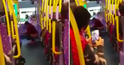 妇人忍不了「便意」被司机拒绝,蹲在巴士走道「产巧克力」乘客吓坏录影留念!(影片)