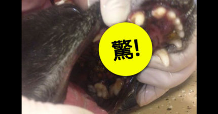 瓢蟲怕冷所以躲到狗狗的嘴巴裡取暖,嘴巴裡面被「瓢蟲攻陷」的樣子讓全部食慾消失…