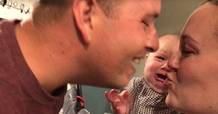 吃醋小嬰兒一看到爸媽親親 馬上擺出「哀怨表情」崩潰大哭!