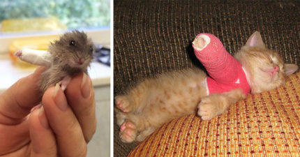 30張讓你看到會心疼到想要代替他們的「爆萌小動物打石膏」照片!
