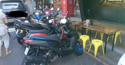 店家為了要在店前擺位子竟然把機車拉出停車格,警察來取締但一走後就上演了「更可惡的店霸行為」!