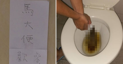 網友在學生宿舍廁所裡發現了「小嬰兒巨大便便」,網友拿尺去量「這間廁所就變成觀光景點了」…