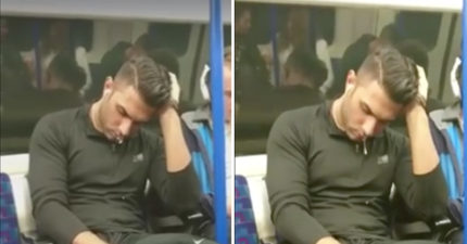 天菜男子在地鐵上睡著還流口水,但最吸睛的還是他「褲子那包」…