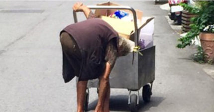 大太陽底下發現打赤腳的婆婆在走路讓人看得心痛,女網友立刻脫鞋讓全國都看到了台灣的人情味!
