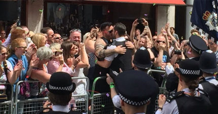 星期六的倫敦同性文化遊行在半途被一名警察阻止了,但觀眾看到警察親完後的動作就都沸騰了!