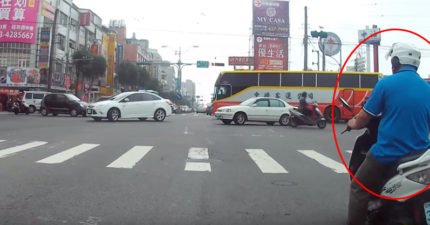 這名男子在等綠燈時,突然「真實打出乾坤大挪移」的招式,讓後面的網友見識到什麼叫武林高手!