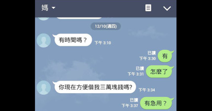 他收到「媽媽傳LINE要借3萬」馬上識破是詐騙集團,最後惡整到”假媽媽”都忍不住飆髒話了!