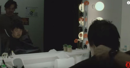 這個男生傻傻的坐下不知道前面的就是有名鬧鬼的鏡子,當燈自己關掉後…